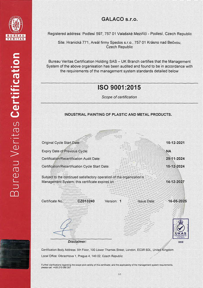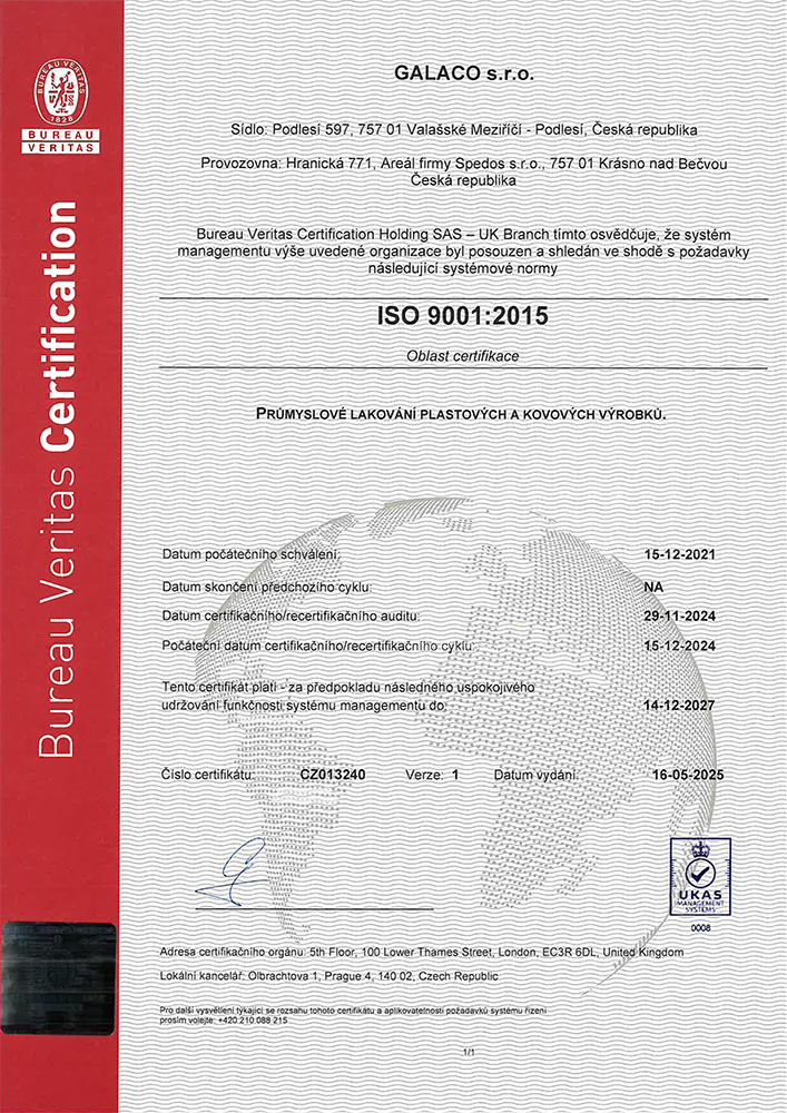 Poskytujeme své služby na nejvyšší požadované úrovni kvality, procesního a projektového řízení, stability a kvality dodávek. Naše společnost byla certifikována dle ISO 9001:2015 společností Bureau Veritas Certification.